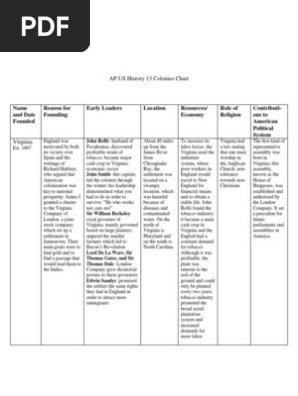 Thirteen Colonies Chart 13 Colonies Chart Information 13