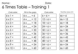 6 X Six Multiplication Times Tables Drill Mental Maths Worksheets