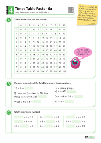 6 Times Tables Division Facts Worksheet Ks2 Number Teaching