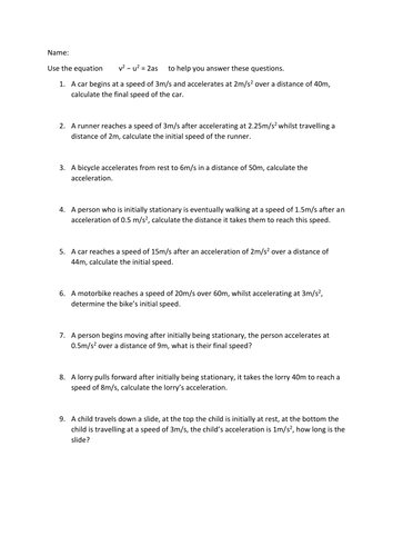 Acceleration Calculation Questions Teaching Resources