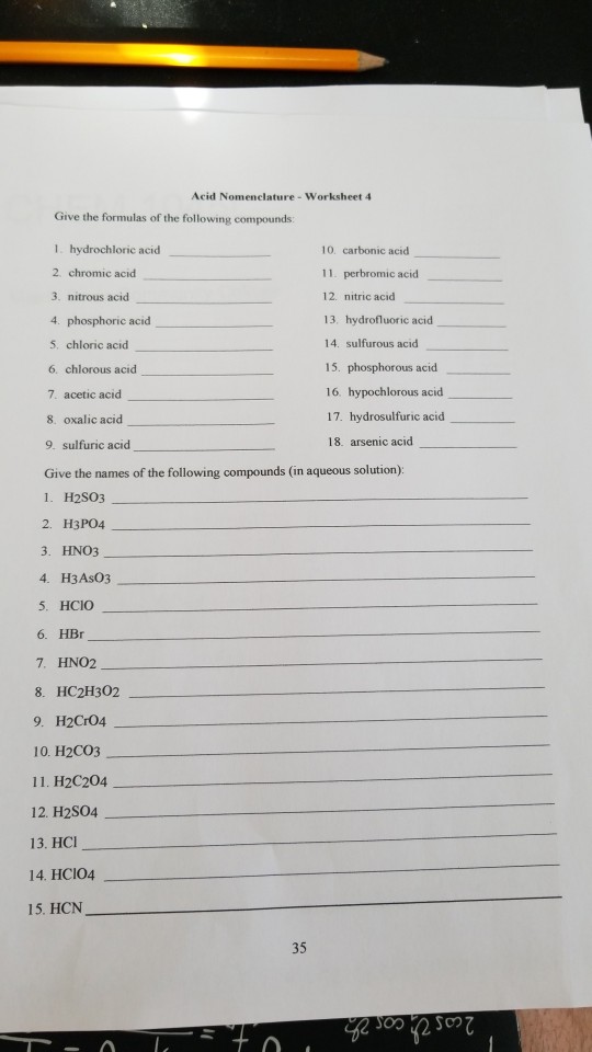 Acid Nomenclature Worksheet