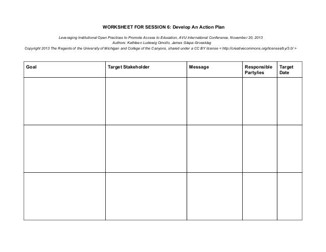 Open Practices Worksheet 6 Develop An Action Plan Avu Conferenc