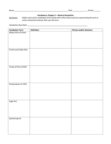 Vocabulary Worksheet Quiz American Revolution Teaching Resources