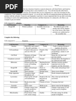 Cell Analogy Worksheet Endoplasmic Reticulum Cell Biology