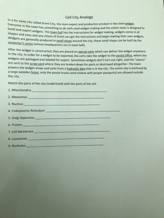 Cell City Analogy Worksheet Cell City Analogy In A For May City