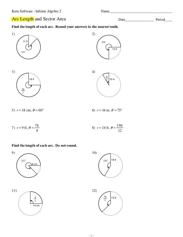 Arc Length And Sector Area Kuta Software Infinite Algebra 2 Name