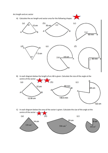 Arc Lengths And Area Of Sectors Maths Worksheet And Answers Math