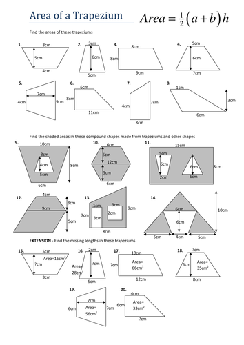 Area Of A Trapezium Worksheet Teaching Resources