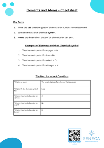 Elements Atoms Worksheet Cheatsheet By Senecalearning