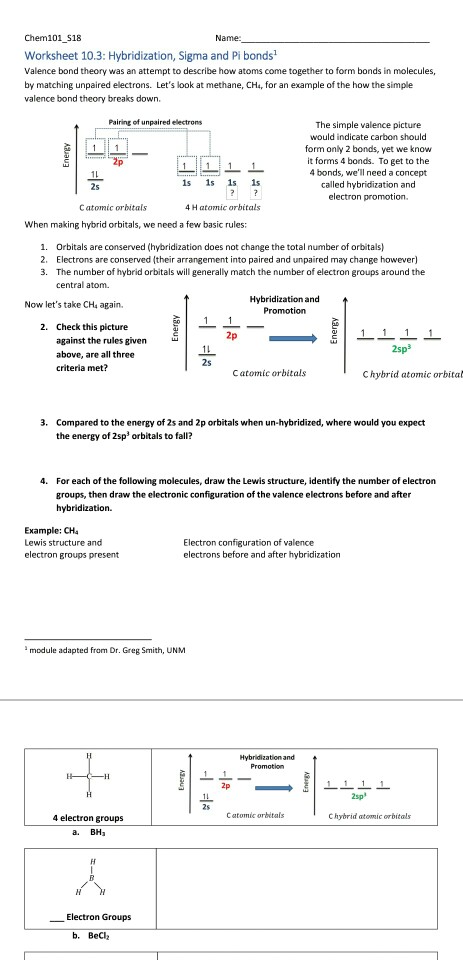 Activity 201 8 Hybrid Atomic Orbitals College Of The 201 8