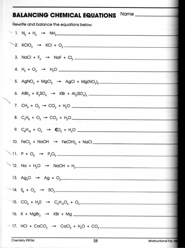 Balancing Chemical Equations Worksheet Answer Key Balancing