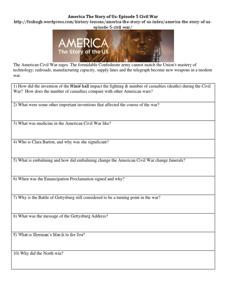 America The Story Of Us Episode 5civil War Worksheet Dvlr70qj7x4z