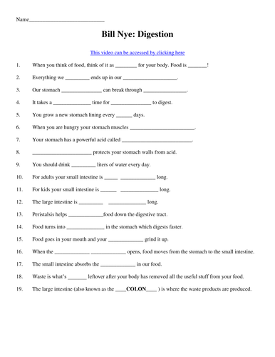 Bill Nye Digestion Worksheet