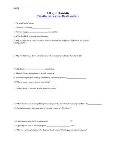 Answer Sheet Bill Nye S Static Electricity Video Worksheet